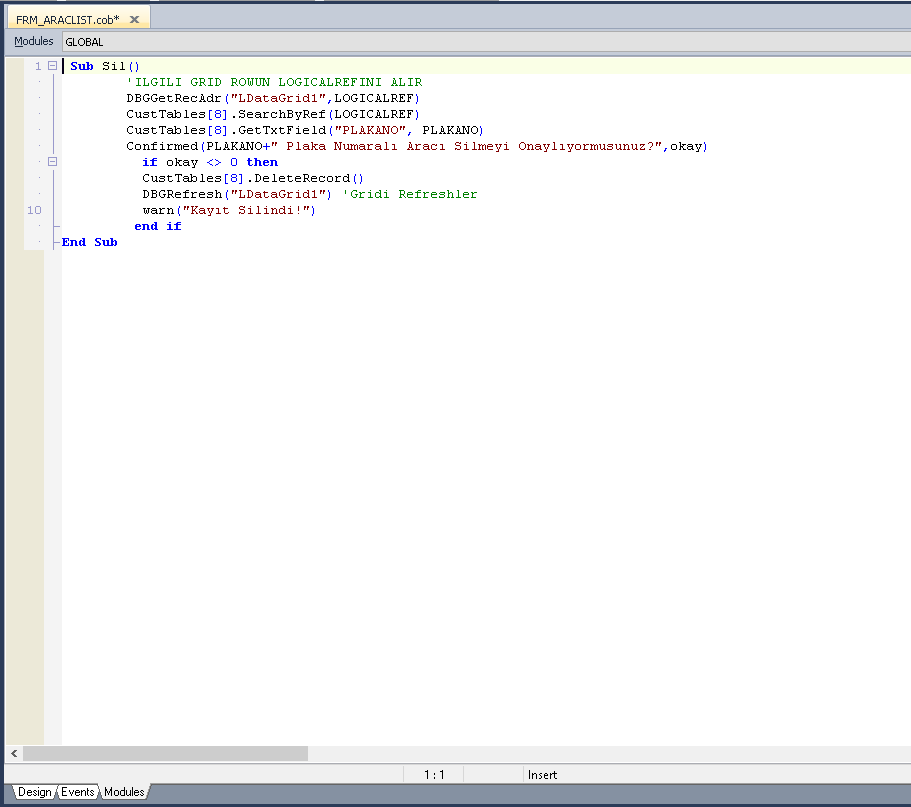 ' Fielttype Alan türü. 1 Integer 2 Date(Logo formatı tarih ) 3 Float 4 Text