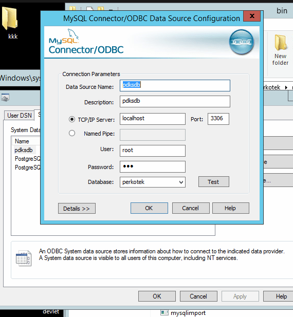 My sql connector mysql-connector-odbc-3.51.30-winx64.msi indirildi