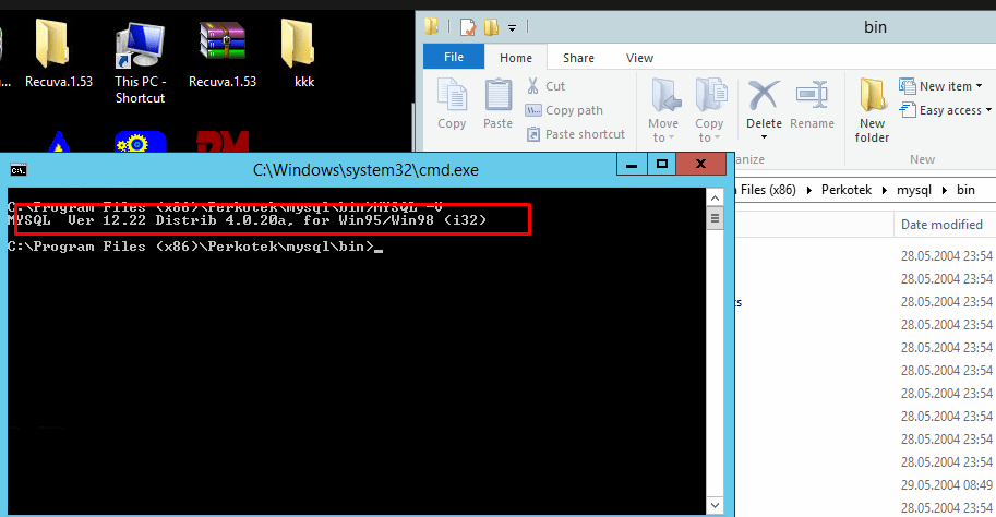 Perkotekin altındaki mysql binin içinde cmd yönetici olarak çalıştırılır